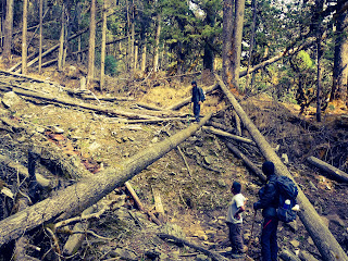 After a leisurely breakfast we started off on our trail. We set off exactly in the opposite direction of where we came from the day before.Our trail today took us through another rhododendron filled section of the forest. The flowers shone bright red against the green of the other trees.Had I had a better camera than my Panasonic Lumix I would have been able to capture much better pictures of these beautiful flowers.