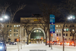 It was around 1930 Hrs when the train slowly pulled inside the Winnipeg Station. We were ahead of schedule and the conductor made a quick announcement that the Train will depart at the scheduled departure time which was at 2200 Hrs and we are free to roam around the station. I gathered my jacket, gloves and beanie and was ready for a quick and short venture into the city.