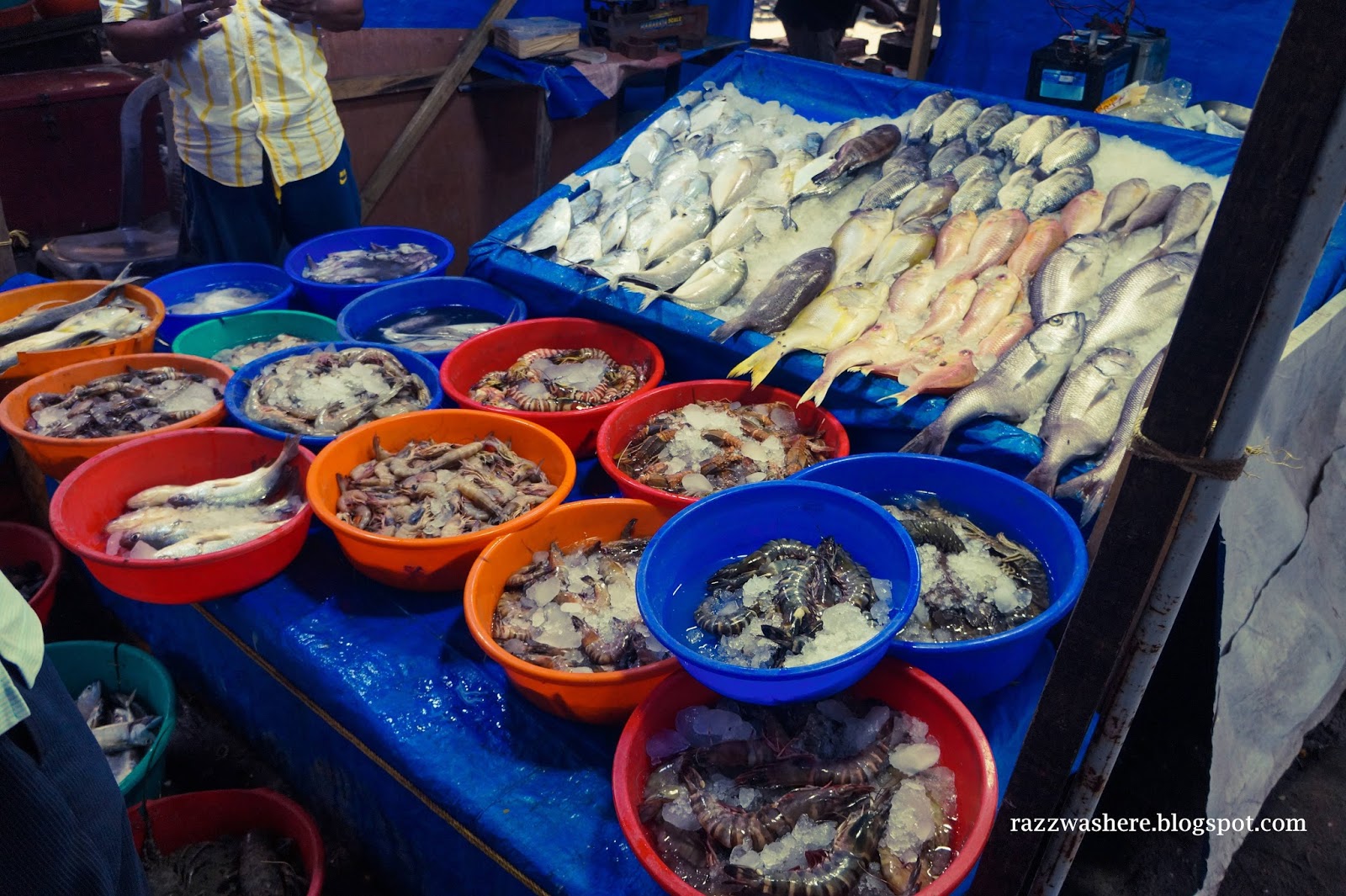 There was a demonstration being given by a local to a couple of foreigners and we watched from our spot. As we were watching, a commotion just ahead of us attracted our attention. A small crowd had gathered and something was going on inside. We hurried to the group and I fought my way into the Centre. There was an auction going on. A man was pulling out huge fishes from a boat nearby, freshly caught and auctioning it off to the highest bidder. A metre long fish with a sharp pointy nose was the one which attracted the most curiosity and I which I assumed sold for the most.It had intense bidding. Nearby in a stall I spotted different types of sea creatures. There were many types of fishes, prawns, squids and even an octopus in a tub. This was certainly the highlight of our walk in Fort Kochi. The sun was slowly descending into the horizon and we started our way back. The fishing nets looked spectacular in the setting sun. A huge ship passed by creating waves in the sea. I squinted my eyes trying to figure out the name of the ship. Later when I googled it I got to know that it was heading towards Lakshadweep. Now I was standing in the mainland looking over to the ship.Someday I hope I stand on the deck of the same ship and look towards to the Kochi Beach.