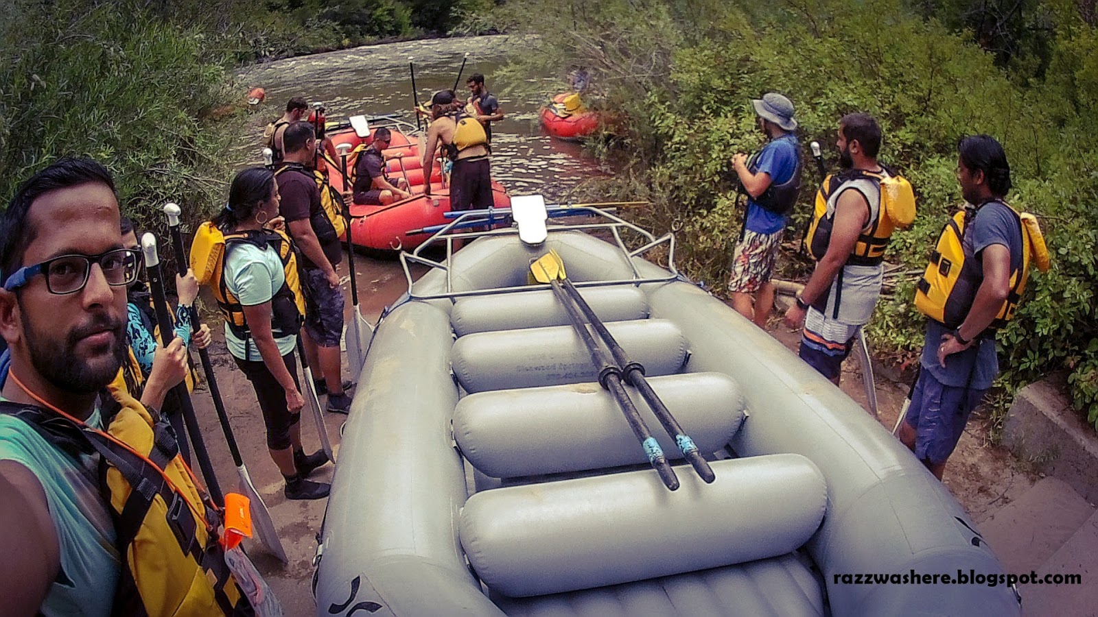We reached the starting point at around 12 30 pm. There was only one last thing to do now and that was each team had to carry their raft with them towards the river. We did this and were in position. Soon, the rafts were dragged into the river, people jumped on them and on they went on their way. Our turn came and we did the same. We were off in the Colorado River now. I already had done river rafting once before. That was in Rishikesh in India some 5 years back. Similar to that one, this was also a grade 2&3 rapids rafting. I was looking forward to how different/similar rafting here would be.