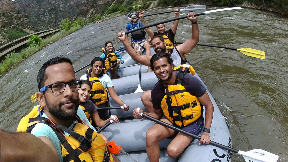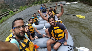 Luckily my sisters husband, Azaan is an active outdoor person himself. He loves going on hikes and doing adventure activities. The weekend I was going there, he had planned, a river rafting trip near the town of Glenwood Springs which was around 150 miles away. Other members of this rafting trip were his friends, Ujjwala, her husband, Manish,, Rohini and Daivik.