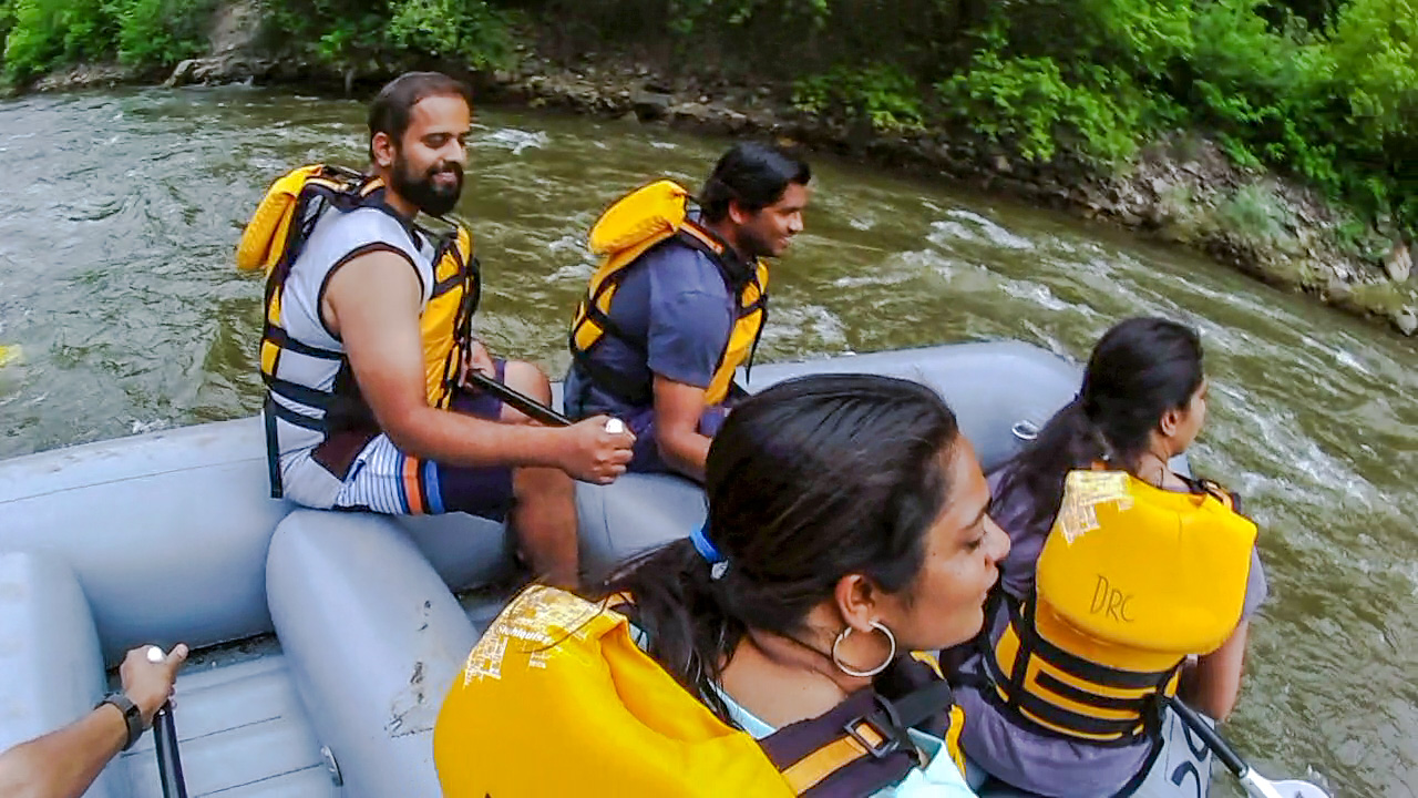 Soon we reached the end, where again we had to get off the raft and carry it upwards towards a waiting vehicle. We all then got inside the bus mighty happy with the rafting experience. We were taken back to the original starting point where we returned all the equipment and changed into dry clothing. By 5pm we were soon on our way back. That ended my first adventure trip in the United States of America all thanks to Azaan and my sister!