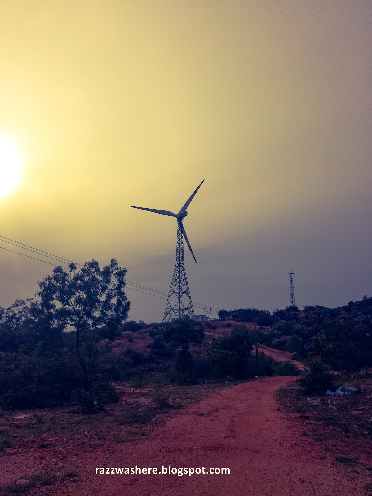 The way to the windmills to the left at the entrance of the temple complex. One can take their two wheeler right to the base of the windmill. Nearby is the office of the engineers. While I was just parking my bike nearby I spotted a engineer walking nearby. I stuck up a conversation with him.